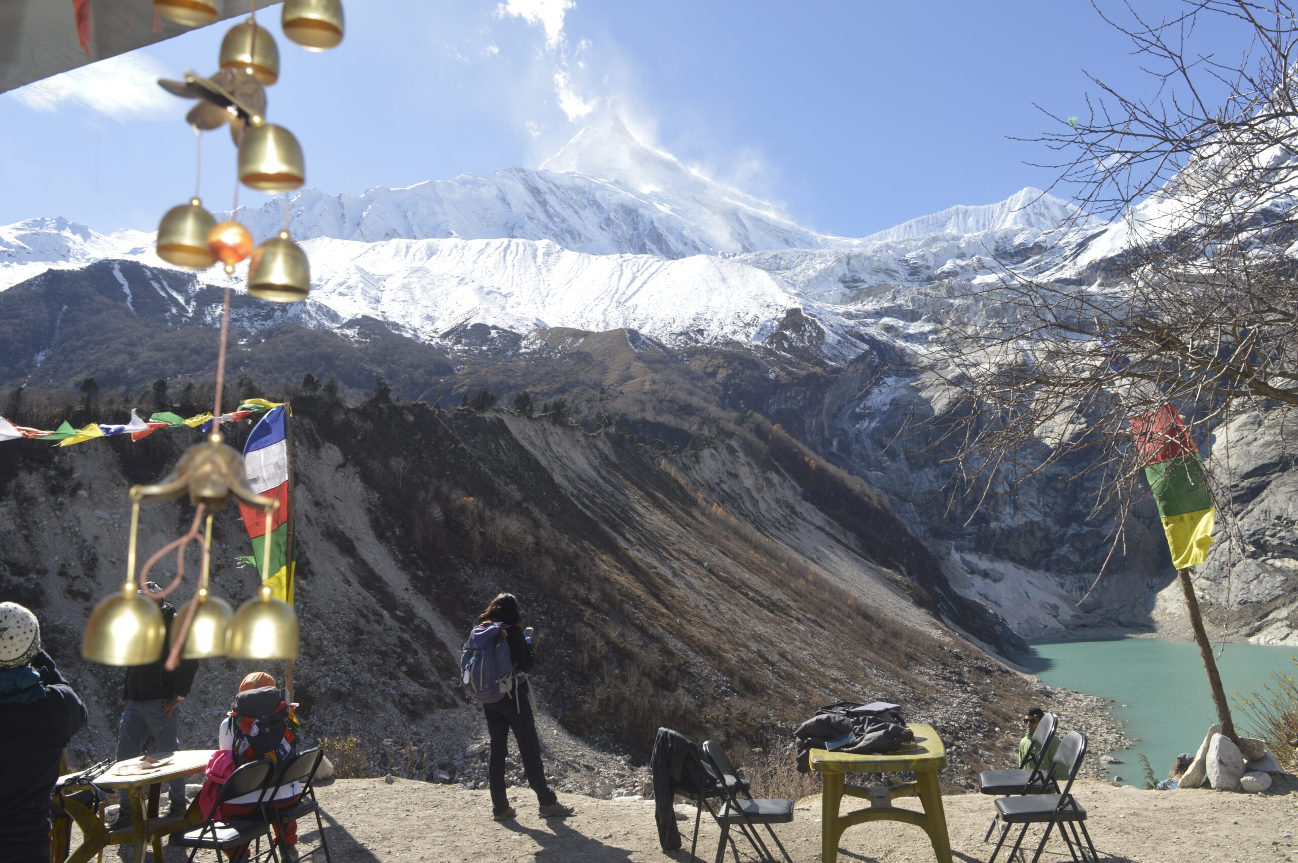 Today, we’ll continue our hike further north along the valley, where the stunning Manaslu Glacier dominates the dramatic landscape. As we trek, the immense northeast flank of the Manaslu massif looms overhead, its sheer height and grandeur creating an awe-inspiring backdrop.